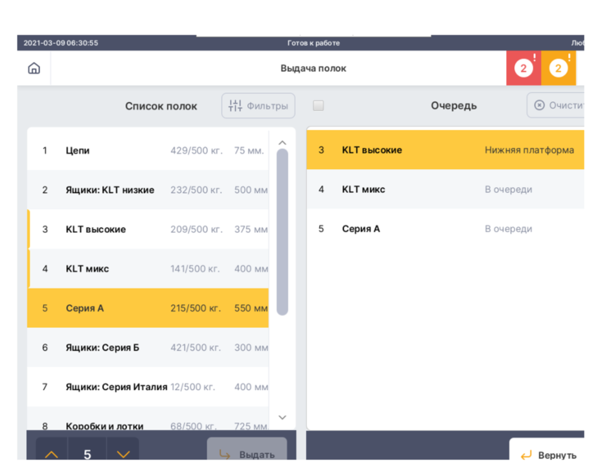 — Несколько зон выдач на разной высоте